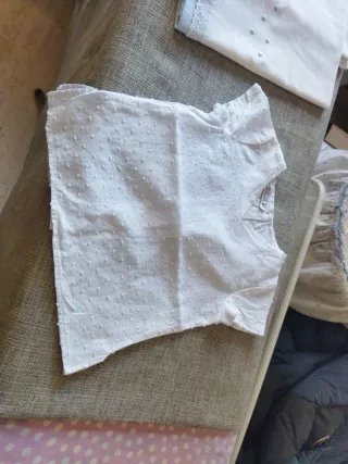 Conjunto de dos piezas para bebé, ideal para los primeros meses. - Sudadera blanca con estampado de mariposas. - Pantalón a juego con cordón. - Talla 6-9 meses.