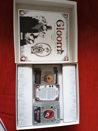 Juego de mesa Gloom, segunda edición. Un juego de incidentes desventurados y trágicas consecuencias. - Diseñado por Keith Baker. - Ilustraciones de estilo gótico.