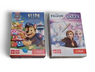 Pack de dos juegos de mesa para niños. - Juego Paw Patrol Flips de Trefl. - Juego Frozen Yatzy de Trefl. -están completamente nuevos conservan los envoltorios de las piezas