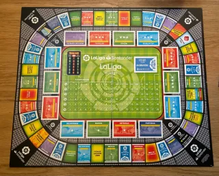 Juego de mesa La Liga Santander de Borras. Ideal para los aficionados al fútbol. 2019-2020 El increíble juego oficial de la liga Santander. Juega en la liga de las estrellas con tu propio equipo, compra y vende jugadores para hacerte con el mejor equipo. Conviértete en el mejor entrenador del mundo. ✨ Completo, contiene: 1 tablero, 6 fichas de colores, escudos de los clubs, 2 dados, 50 cartas de incidencias, 220 tarjetas de futbolistas, billetes, 6 cartones de alineación, 1 bloc calendario y reglas de juego. Edad recomendada +10 años