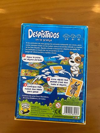 Juego de mesa Despistados en la granja. - Ilustraciones divertidas de animales de granja. - Caja con una raja en una esquina pero producto en muy buenas condiciones. - Diseñado por Guillem Coll y Ana Marco. - Publicado por Rocket Lemon Games.