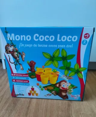 Juego de mesa Mono Coco Loco, un divertido juego de lanzar cocos. - Edad recomendada: +4 años. - Para 2 jugadores. - En perfecto estado. - Incluye todos los componentes necesarios para jugar. - Ideal para desarrollar la habilidad manual y la coordinación ojo-mano. - Perfecto para jugar en familia o con amigos.