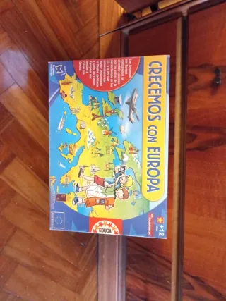 Juego de mesa educativo Crecemos con Europa. - Aprende sobre los países de Europa de forma divertida. - Fomenta el conocimiento de la Unión Europea. - Incluye mapa de Europa y elementos interactivos.