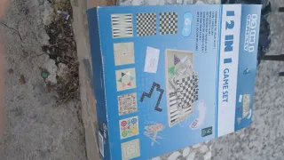 Set de juegos de mesa 12 en 1, ideal para toda la familia. Incluye varios tableros y piezas para disfrutar de diferentes juegos. - Incluye juegos como ajedrez, damas, backgammon y más. - Diseñado para niños a partir de 6 años. - Contiene piezas de madera y tableros de cartón.
