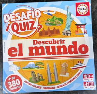 Juego de mesa educativo para descubrir el mundo. Ideal para aprender sobre historia, cultura, curiosidades y geografía. - Más de 380 preguntas. - Para 2-4 jugadores. - Edad recomendada: 7+ años. - Duración aproximada: 30 minutos.