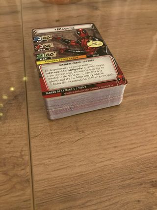 Expansión para el juego de mesa Marvel Champions. En perfecto estado. 78 cartas. Deadpool. - Incluye el héroe Masacre. - Expande las opciones de juego.