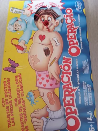 Juego de mesa Operación de Hasbro para niños. ¡Pon a prueba tu pulso! - Incluye tarjetas de doctor y piezas clásicas. - Requiere montaje por un adulto. - Sonará la alarma si no se opera con cuidado.