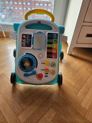 Este andador y mesa de actividades de Baby Einstein ofrece múltiples opciones de juego para los más pequeños. - Diseño 4 en 1. - Incluye piano, mesa de DJ y actividades interactivas. - Mango para empujar y aprender a caminar. COMO SE VE EN LA.FOTO FALTA EL.TELEFONO, PERO LO.DEMAS FUNCIONA TODO CORRECTO