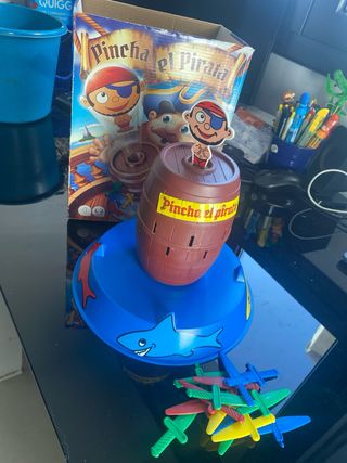 Juego de mesa clásico Pincha el Pirata. - Incluye 1 base, 1 barril, 1 pirata y las espadas. Es un juego super divertido, y fácil para los niños pequeños. Trabaja la motricidad fina y las esperas.