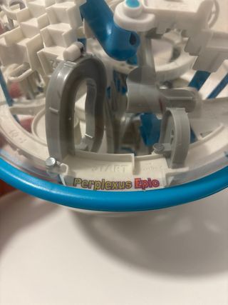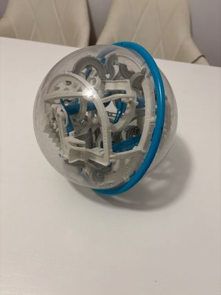 Divertido juego de laberinto en forma de esfera. - Laberinto tridimensional. - Diseño transparente con detalles en azul y blanco.