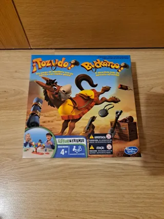Juego de mesa Tozudo, ideal para divertirse en familia. - Incluye figura de caballo. - Contiene varios accesorios de plástico de colores: lazo, linterna, sombrero, pala, saco, etc. - Caja original.