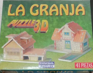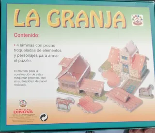 Puzzle 3D de La Granja de la marca Dinova. Contiene 4 láminas con piezas troqueladas para armar elementos y personajes. - Material reciclado. - Incluye casas, animales y elementos de granja.