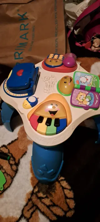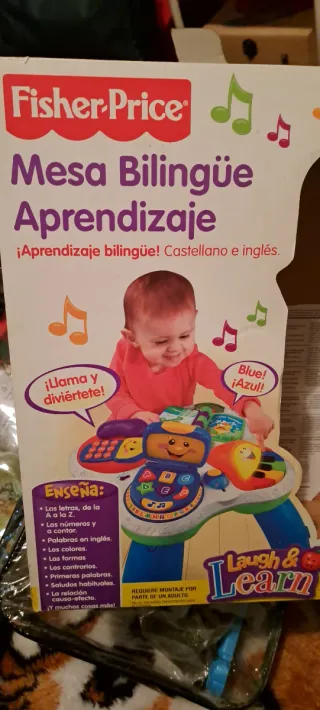 Mesa de aprendizaje bilingüe de Fisher-Price. - Enseña letras, números, colores y formas. - Incluye palabras en inglés y español. - Fomenta la relación causa-efecto.
