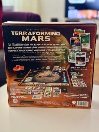 Juego de mesa Terraforming Mars de Jacob Fryxelius. - Nunca ha sido usado. - Juego de estrategia y exploración. - Ambientado en la colonización de Marte. - Incluye componentes para varios jugadores.