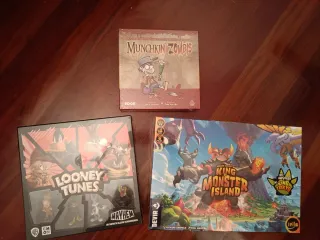 Lote de tres juegos de mesa, nuevos precintados. - Munchkin Zombies - 15€ - Looney Tunes Mayhem - 22€ - King of Monster Island (del Universo King of Tokyo) - 30€ Comprados y nunca usados. Los tengo en una armario ocupando sitio. El precio es a como los compré en su día, no pretendo ganar dinero sino recuperar lo invertido. Si te interesa alguno o varios, o si tienes alguna duda respecto al estado de los juegos, escríbeme y hablamos. Si compras los 3 juegos escucho ofertas. Devir, Edge