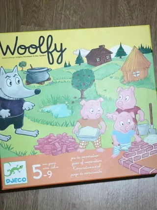 Juego de mesa cooperativo Woolfy de Djeco, ideal para niños de 5 a 9 años. - Juego de cooperación. - Ilustraciones coloridas. - Diseñado por Grégory Kirszbaum y Alex Sanders.