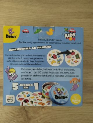 Juego de cartas Dobble Kids, ideal para los más pequeños. ¡Encuentra la pareja! - Edad recomendada: 4+ años. - Jugadores: 2-8. - Tiempo de juego: 15 minutos.