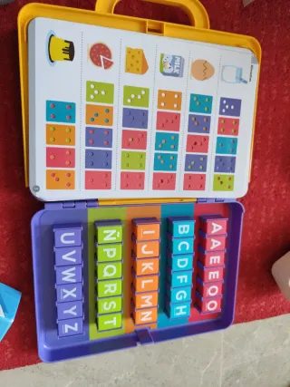 Juego didáctico para el aprendizaje de vocabulario y letras. - Incluye tablero con imágenes y letras. - Fomenta el desarrollo del lenguaje. - Diseño colorido y atractivo.
