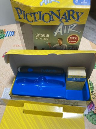 Juego de mesa Pictionary Air, ¡dibuja en el aire! - Incluye bolígrafo Pictionary Air. - Tarjetas de juego. - Base de juego.