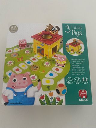Juego cooperativo de mesa 3 Little Pigs de Goula. Diseñado para jugar en familia. - Juego de mesa cooperativo. - Incluye tablero, figuras y dado. - Edad recomendada: 2+ años. - Duración aproximada: 10 minutos. - Jugadores: 1-4.