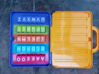 Maletín educativo que permite aprender a leer, formar palabras y deletrear. Incluye 15 láminas y 90 fichas, lo que posibilita la formación de hasta 90 palabras. El sistema autocorrectivo asegura que solo la ficha correcta encaje en el hueco de la palabra, facilitando la verificación del progreso. El maletín sirve para almacenar y transportar las fichas, además de funcionar como base para el juego. Contenido: maletín, 15 láminas, 90 palabras y 90 fichas