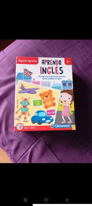 Juego de mesa Clementoni para aprender inglés de forma divertida. - Incluye ilustraciones de aviones, robots, osos de peluche y coches de juguete. - Diseñado para niños a partir de 5 años. - Ideal para aprender vocabulario en inglés.