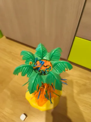 Juego de mesa clásico Monos Locos. Ideal para pasar un rato divertido. - Incluye palitos de colores (naranja y azul). - Base amarilla y palmera verde.