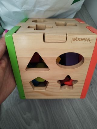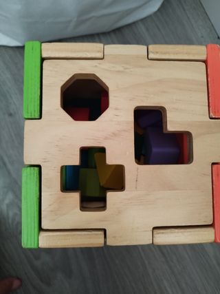 Puzzle geométrico de madera de la marca Hape. - Incluye 7 piezas de formas geométricas. - Diseñado para niños a partir de 18 meses. - Fomenta el aprendizaje y la exploración de formas.