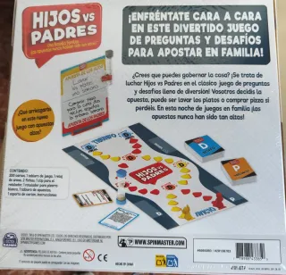 Vendo este juego de mesa por tenerlo duplicado y no poderlo devolver. Está totalmente nuevo, conserva los plasticos de fábrica. Precio algo negociable. Divertido juego de mesa familiar Hijos vs Padres. Ideal para partidas llenas de risas y desafíos. - Juego de mesa para 2-6 jugadores. - Edad recomendada: 6+ años. - Incluye tablero, cartas y fichas.