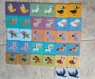Set de juego de mesa que combina las dinámicas de Memory y Puzzle. Ideal para ejercitar la memoria y la concentración. - Incluye 32 fichas con diferentes animales de memory. - 16 puzzles de 2 piezas cada uno. -8puzzles de 4 piezas cada uno. En muy buen estado. Solo envios con inpost