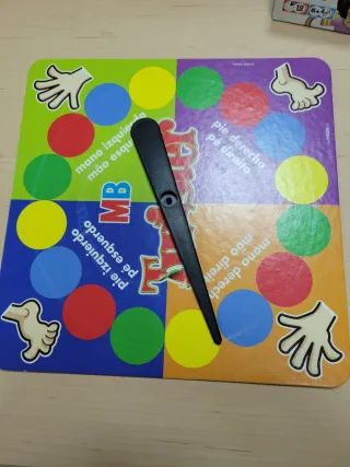El clásico juego de Twister para divertirse en familia o con amigos. ¡Pon a prueba tu equilibrio y agilidad! - Juego de mesa Twister. - Marca MB. - Para mayores de 6 años y 2 jugadores. Esta completo, lo único el plástico tienes algun circulo desgastado