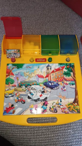 Divertido puzzle infantil con los personajes de Mickey Mouse. 4 puzzles en total. Ideal para los más pequeños. A partir 5 años. - 4 puzzles con los personajes de Mickey Mouse. - 35 piezas cada puzzle. - Base para montar los puzzles y poder guardar las piezas en su compartimento. - Por detrás las fichas tiene un color diferente, para que no se mezclen. - Ilustración de Mickey's Toontown.