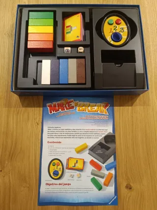Juego de mesa Make 'n' Break de Ravensburger. Ideal para pasar un buen rato. - Incluye bloques de construcción de colores. - Tarjetas de desafío. - Dado. - Instrucciones.