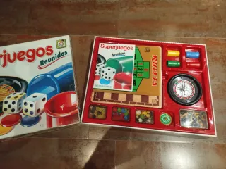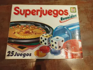 Caja de juegos de mesa Super Juegos Reunidos. - Incluye 25 juegos diferentes. - Contiene ruleta, dados y fichas El ajedrez no está completo por eso lo bajo a 10 Tiene la bolita de la ruleta