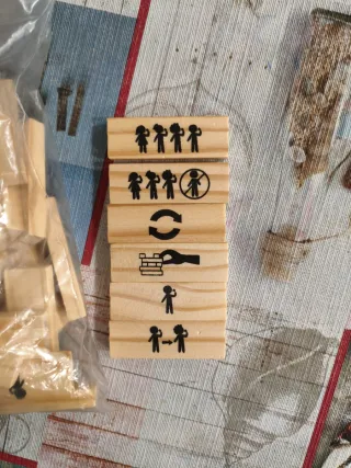 Juego de mesa con bloques de madera y figuras. - Bloques de madera con diferentes grabados. - Figuras de personas y símbolos. - Ideal para juegos de estrategia -juego de mesa para beber con amigos y familia