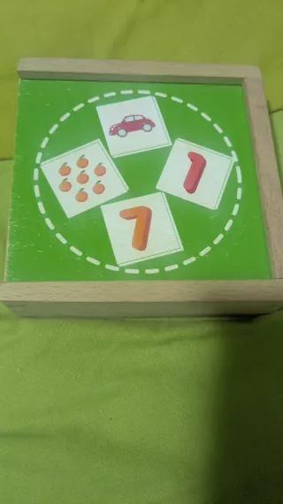 Juego educativo de madera para aprender números y conceptos. - Tablero con diseño de círculo. - Incluye tarjetas con números y dibujos. - Material de madera.