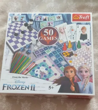 Juego de mesa Frozen II de Trefl con 50 juegos diferentes sin estrenar, nuevo - Incluye tablero de juego, cartas, dados y fichas. - Personajes de la película Frozen II. - Edad recomendada: 5+ años.