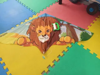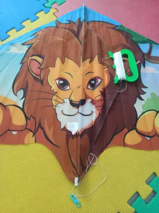 Cometa con diseño de león, ideal para disfrutar al aire libre. - Diseño de león. - Incluye carrete con hilo.