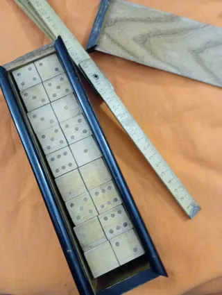 Dominó antiguo en caja de madera