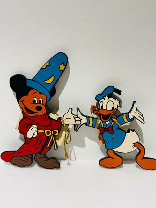 Espectaculares siluetas de madera del mundo Disney de los años 70 y 80 que se usaban para decorar las habitaciones para los niños y niñas pequeños de la EGB. Recuerdo nostalgia antigüedad retro. Vintage eran pintadas a mano con gran detalle. En este caso el pato Donald mickey retro, Vintage antiguo antigüedad reliquia, objeto, curioso, nostalgia recuerdo memoria de decoración Schleich Peyo