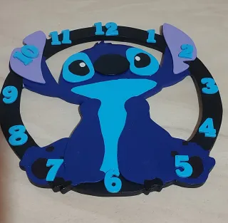 Original reloj decorativo hecho a mano con la figura de Stitch. De madera - Diseño único y colorido. - Ideal para habitaciones infantiles o como regalo. - Materiales de calidad para mayor durabilidad.