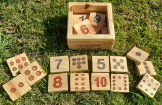 Set de bloques de madera con números y puntos, ideal para el aprendizaje. - Fabricado artesanalmente en madera. - Incluye números del 1 al 10. - Cada número está representado con su cifra y su cantidad de puntos correspondiente. -Incluye caja