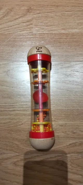 Sonajero y palo de agua de la marca Hape, ideal para estimular los sentidos de los más pequeños. Su diseño combina materiales seguros y atractivos. - Cuerpo transparente para ver las cuentas. - Tapas de madera en los extremos. - Elementos de colores en el interior.