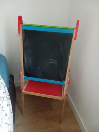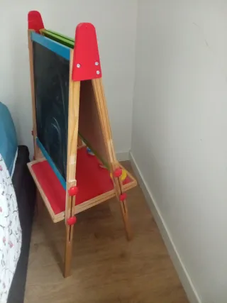 Pizarra de madera para niños de la marca Hape. Ideal para fomentar la creatividad. - Estructura de madera. - Superficie de pizarra. - Bandeja para materiales.