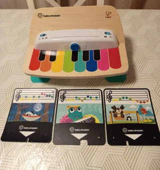 Piano táctil de madera Baby Einstein HAPE 6M+ con diseño colorido y divertido: - Volumen regulable. - 3 partituras y 6 canciones diferentes - Dos modos de juego. Crear sus propias melodías o descubrir otras ya conocidas - Seguro para niños con materiales duraderos - Teclas de colores vibrantes. - Marca: Hape Baby Einstein. *Excelente estado. Casi nada de uso.