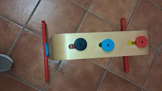 Juguete de madera con cuentas de colores para estimular la motricidad fina. - Base de madera con forma de mariposa. - Alambre curvo con cuentas de colores. - Diseño colorido y atractivo.