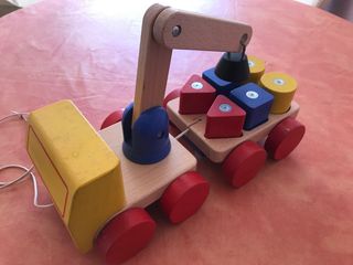 Juguete de grúa de madera de IKEA, ideal para los más pequeños. Incluye varios bloques de construcción de diferentes formas y colores. - Fabricada en madera. - Incluye bloques de construcción. - Diseño tipo grúa.