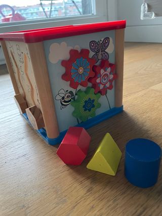 juguete de madera para encajar piezas y para desarrollar la motricidad fina del niño. Montessori