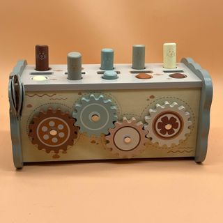 Mesa de actividades de madera con diseño de casa y elementos de juego. Prácticamente sin ningún uso. Comprada en diciembre de 2025. Se entrega con su caja correspondiente. - Estructura principal en forma de casa rosa. - Incluye laberinto de cuentas de colores. - Figuras de nube y estrella. - Engranajes decorativos.