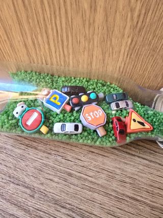 Botella sensorial Montessori para bebés y niños. Ideal para estimular los sentidos. - Contiene miniaturas de coches y señales de tráfico. - Bote transparente con tapón de madera y de plástico. (Sellados con pegamento) Material libre de bpa y ftalatos - Perfecta para el desarrollo sensorial.